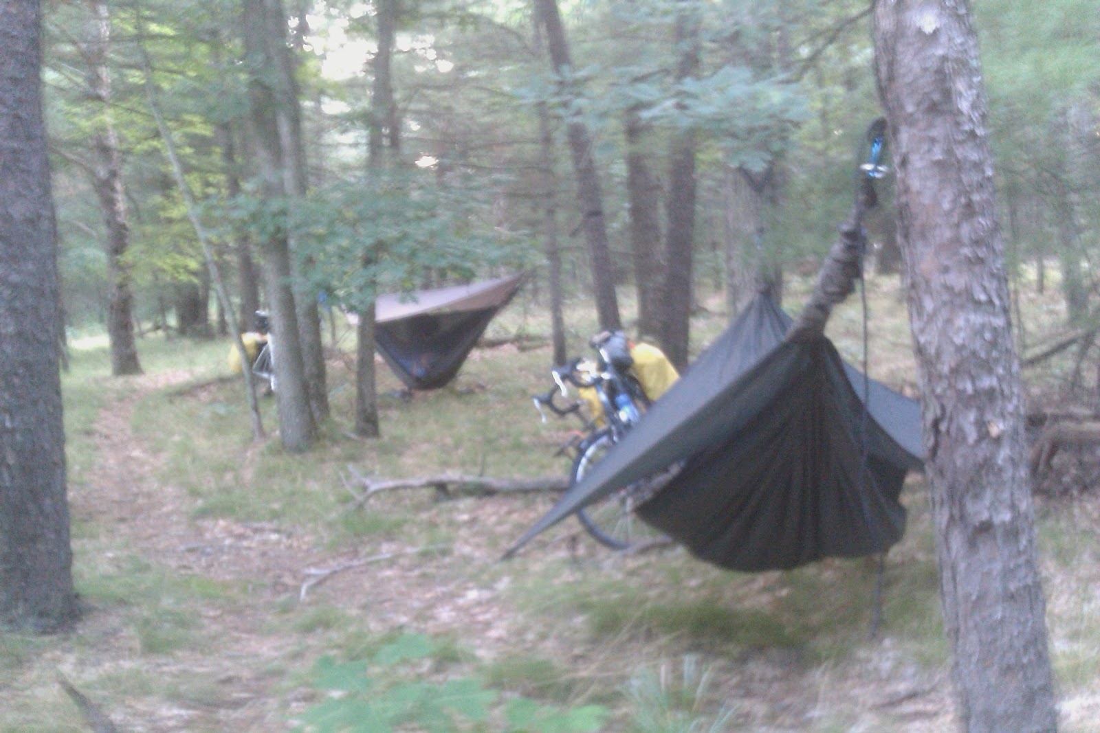 For day two Kevin and I decided to bike through Manistee National Forest. Turns out, 37 is the only reliable non-dirt road we could find. However, 37 did allow us to keep a decent pace since we started late in the day. Due to our inability to read a map, our "campground" actually was not a campground at all. So we found a couple trees in the woods at dusk and stayed a night.